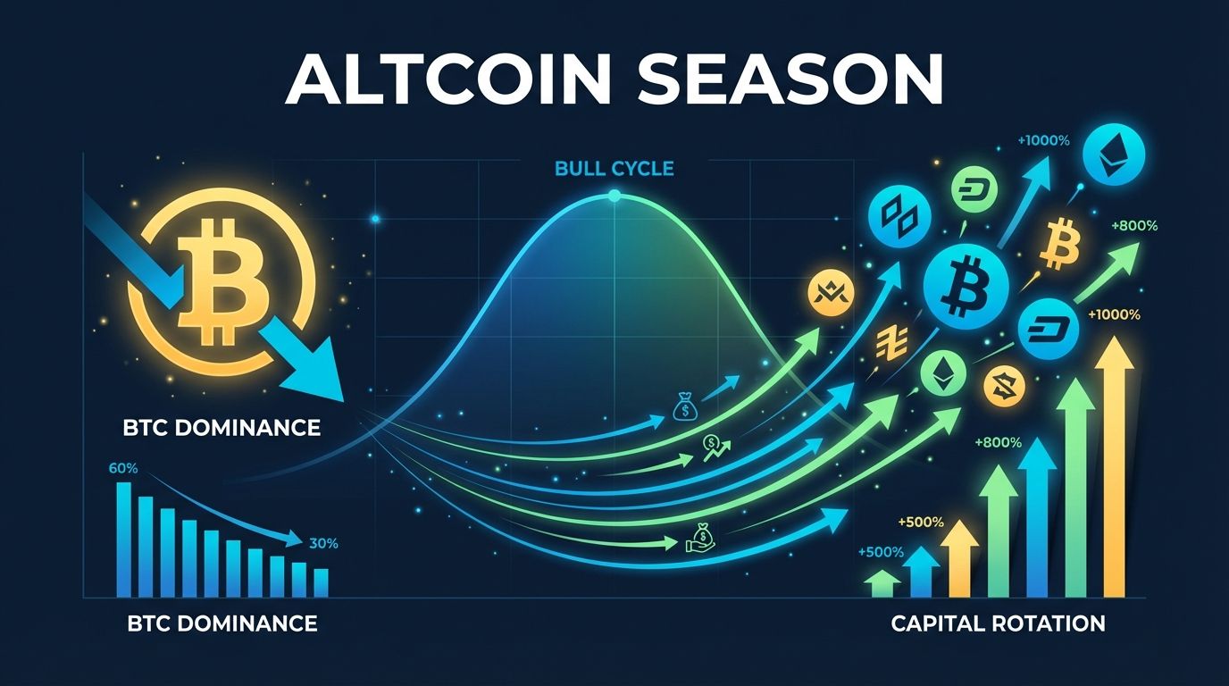 Altcoin season does not appear out of nowhere. It follows a predictable sequence rooted in how capital flows through the crypto market. Understanding the triggers helps you position yourself before the crowd arrives.